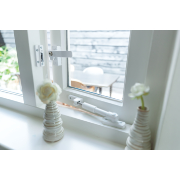 Voor makkelijke bediening van draai- en klepramen gebruikt u deze witte AXA-tele-uitzetter met een lengte van 200mm. De tele-uitzetter heeft traploze ventilatiestanden voor optimale ventilatie van de ruimte met behulp van een draai- of klepraam. Wanneer u het raam opent, steekt de tele-uitzetter niet naar binnen waardoor de witte uitzetter van 200mm in combinatie met een hor, vitrage of raamdecoratie gebruikt kan worden. Daarnaast is de uitzetter ook aan de bovenzijde van een draairaam te monteren, zodat u aan de onderkant van het raam ruimte heeft om bijvoorbeeld kleding of beddengoed uit te hangen. Montage van de 200mm lange tele-uitzetter is eenvoudig. Ook stelt u slechts eenmalig de gewenste remwerking in voor iedere ventilatiestand.