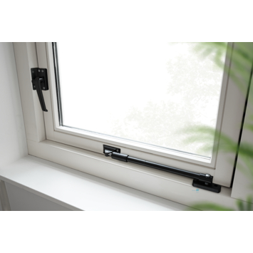 De Axa raamuitzetter telescoop 35 cm buitendraaiend zwart is telescopisch verstelbaar en is geschikt voor ramen tot maximaal 80 cm breedte. De raamuitzetter is gemaakt van zwart gelakt staal. De raamuitzetter is geschikt voor naar buiten draaiende ramen. Het grote voordeel van deze telescopisch verstelbare raamuitzetter is dat je het raam op iedere gewenste (ventilatie)stand open kunt zetten. Ook het monteren is dankzij de meegeleverde montagehandleiding erg gemakkelijk. Zeker wanneer je gebruik maakt van een raamhor is een telescopische raamuitzetter een absolute must have ten opzichte van een standaard uitzetijzer.