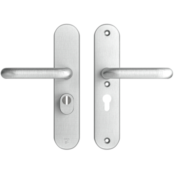 AXA veiligheidsbeslag in geslepen aluminium uitvoering in de kleur zilver voor deurdiktes van 38-54mm. Het AXA veiligheidsbeslag is uitgerust met kerntrekbeveiliging en beschikt over een SKG*** keurmerk en voldoet aan de eisen van Politiekeurmerk Veilig Wonen. Hierdoor zorgt dit veiligheidsbeslag van AXA voor een optimale inbraakwerendheid. De schilden en deurkrukken hebben een ronde vorm. Door de geslepen matte uitvoering zijn deze minder krasgevoelig en laten geen zichtbare vingerafdrukken achter. Dit AXA veiligheidsbeslag is geschikt voor achterdeuren, schuurdeuren, bergingsdeuren, balkondeuren en garagedeuren met een hart op hart slotmaat van 55mm. De bijgeleverde seal voorkomt beschadiging van de verflaag bij het demonteren en houdt water en tocht effectief tegen. Het veiligheidsbeslag wordt geleverd inclusief bevestigingsmaterialen.