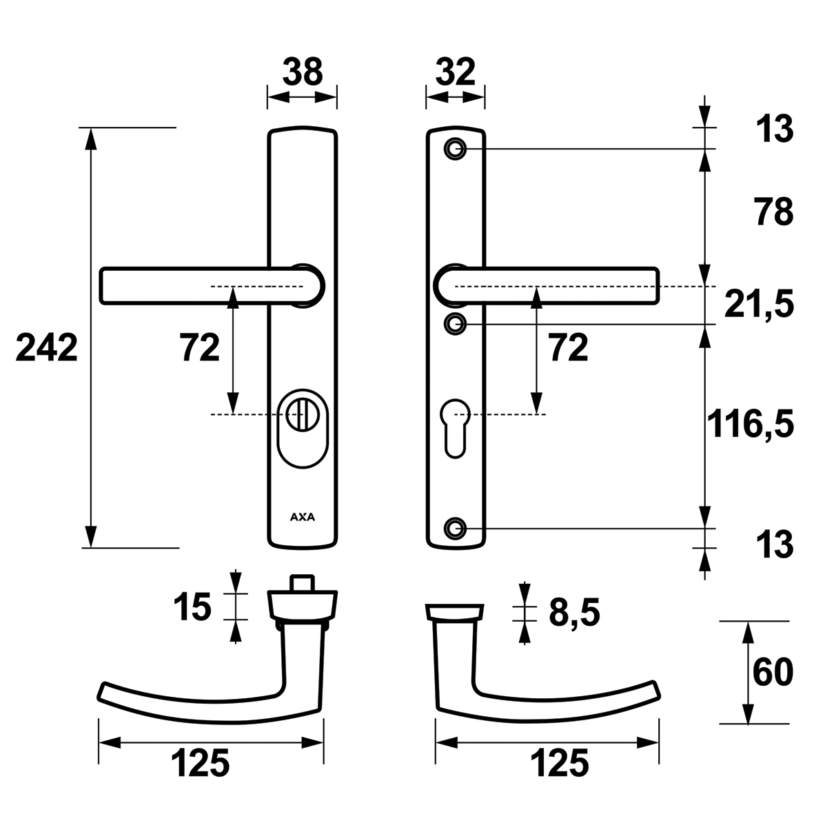 - Accessoires bijgeleverd:Schroeven, Deurschilden, Deurkrukken