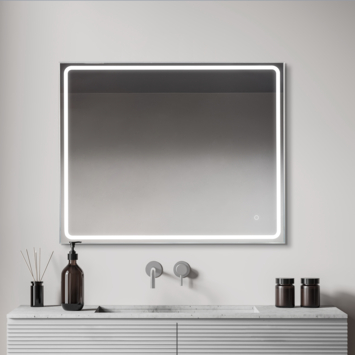 Badkamerspiegel Isla met verlichting rechthoek 100 x 80 cm met lijst chroom