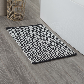 Sealskin Bandra badmat zwart 60x90 cm van het kwaliteitsmerk Sealskin is gemaakt van 100% gerecyclede katoen vezels. Buiten het feit dat het een "groene" badmat is en dus een bewuste keuze, geeft de Bandra badmat ook een prettig gevoel aan de voeten. De Bandra badmat in de kleur zwart-wit geeft de badkamer een trendy uitstraling en past in iedere gangbare badkamer. De Bandra badmat is 60 bij 90 centimeter en is zwart met wit geblokt, dit geeft een uniek en hip effect. Deze badmat is goed wasbaar op 30 graden.
