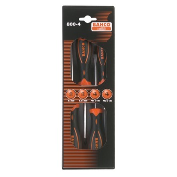 Deze Bahco schroevendraaierset uit de 800-series bestaat uit 4 schroevendraaiers in verschillende afmetingen. Twee schroevendraaiers zijn geschikt voor gleufschroeven, en twee voor Phillips-schroeven (kruis). Dankzij het speciale ontwerp rollen de schroevendraaier niet weg. Op het uiteinde van de handgreep staat een symbool waaraan u snel ziet of dit de juiste schroevendraaier is voor uw schroefklus. De schroevendraaiers zijn gemaakt van hoogwaardig gelegeerd kwaliteitsstaal, en zijn verchroomd en geheel gehard. De set is verpakt in een kartonnen doos. Handig om in huis te hebben, om voorbereid te zijn op veel schroefklussen.