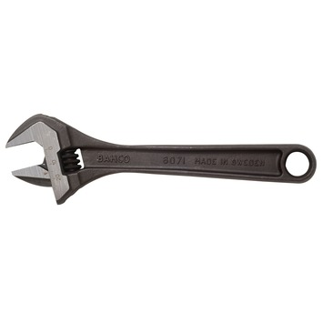 Deze Bahco verstelbare moersleutel 8071 heeft een smalle, sterke bek voor een goede werking en bereik. De moersleutel is voorzien van een linksdraaiende schroef. De omkeerbare bek is aan één zijde getand voor gebruik als pijptang en heeft een schaalverdeling in millimeter voor vooraf instellen. De moersleutel voldoet aan de normen ISO 6787, DIN 3117 Vorm, ASME B107.8M - 1996 en BS 6333. De sleutel is gemaakt van hooggelegeerd kwaliteitsstaal, is gefosfateerd, precisie-gehard en heeft een roestwerende behandeling gehad. Kortom: van deze verstelbare moersleutel hebt u jarenlang plezier.