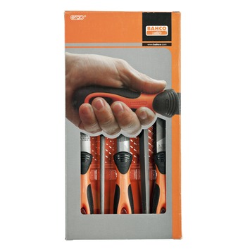 De Bahco vijlenset 1-477-08-2-2 bestaat uit vijlen voorzien van een ergonomisch vijlhecht ontwikkeld volgens het wetenschappelijk ERGO™ proces. De vijl ligt daardoor prettig in de hand. De vijl is geschikt voor het vijlen van vlakken, scherpe hoeken en voor ontbramen, evenals voor het vijlen van gaten, grote mallen en holle oppervlakken. Speciaal geschikt voor hout applicaties, dankzij de hoge verspaningscapaciteit. De vijlenset bestaat uit 5 vijlen met ergonomisch hecht, verpakt in karton in een duurzaam kunststof opberg-rolfoedraal met veter. De inhoud bestaat uit 1 hand/blok-vijl, 1 halfronde vijl, 1 ronde en 1 driekant werkplaatsvijl en 1 halfronde rasp. Gekapt volgens kaptype 2 (half-zoet).