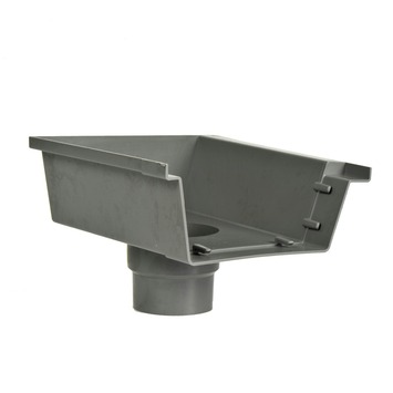 De Martens bakgooteinduitloop rechts grijs 125 mm wordt aangesloten op de mastgoten om een afvoer naar de regenpijp te creëren. Het is belangrijk dat de uitloop goed aansluit op de mastgoten, zodat het water goed wordt afgevoerd.