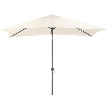 Deze parasol heeft een hoogte van 235 centimeter, een breedte van 150 centimeter en een lengte van 250 centimeter. De diameter van de paal is 3,8 centimeter.