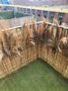 De meeste natuurschermen zijn goed te bevestigen met binders, nieten of schroeven. Zorg ervoor dat het scherm niet in direct contact komt met de ondergrond om de levensduur te verlengen