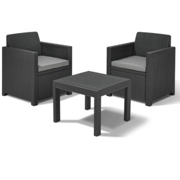 Het was makkelijk om de stoelen en het tafeltje in elkaar te zetten. De uitleg was duidelijk en het ging vlot. De set staat nu prima op mijn balkon. Dat de kussens erbij zaten, was voor mij een bonus!