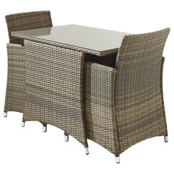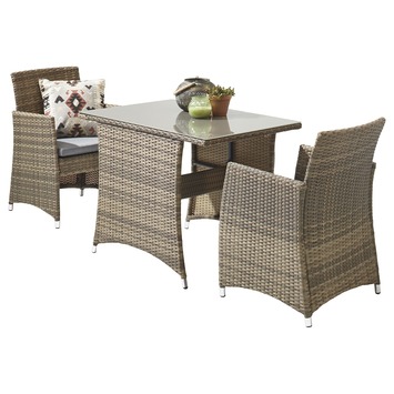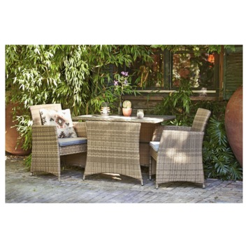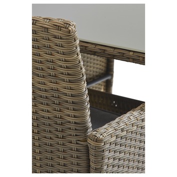 Wicker is materiaal van kunststof dat erg goed tegen weer kan. Wij adviseren het meubel te reinigen met natuurlijke zeep en een zachte borstel.
