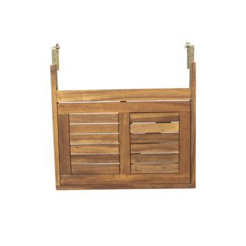Mooi tafeltje, wij hebben hem aan de schutting hangen naast de barbecue als een soort bijzet tafeltje. Neemt weinig ruimte in en is goed stevig te bevestigen aan de schutting