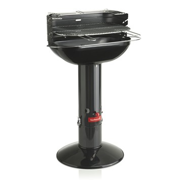 Een stoere houtskoolbarbecue die in geen enkele tuin misstaat. De Barbecook Arena zwart is voorzien van het snelle aanmaaksysteem QuickStart dat gebruik maakt van een regelbare luchttoevoer. Binnen 15 minuten zijn de briketten of houtskool warm genoeg om het BBQ-en te starten. De BBQ is 101cm hoog, waardoor je op een goede stahoogte kunt werken. Met de Quickstop in de vorm van een waterreservoir, maak je de BBQ snel en veilig uit. Het grilloppervlak van 56x34cm is goed voor ongeveer 10 personen en bestaat uit verchroomd staal en is daarmee praktische roestvast. Dankzij het warmhoudrooster kun je al het eten tegelijk warm serveren. Het omhulsel en het windscherm zijn gemaakt van geëmailleerd staal en dus makkelijk schoon te maken. Kortom: ouderwets BBQ-en met houtskool.