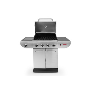Barbecook buitenkeuken Sumo RVS maakt het eenvoudig om op gas te barbecueën. De buitenkeuken is voorzien van een gietijzeren rooster en warmhoudrooster. Op de vier branders kun je vlees, groenten of vlees grillen wanneer jij wilt. Deze buitenkeuken heeft tevens een zijbrander. De buitenkeuken is voorzien van wieltjes, waardoor verplaatsen eenvoudig is. De barbecue beschikt over twee roosters van 32 centimeter bij 46 centimeter en heeft dus in totaal een grilloppervlak van 64x46 cm. Barbecook buitenkeuken Sumo RVS is 106 centimeter hoog, 120 centimeter breed en 50 centimeter diep.