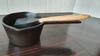 Zwaar, dus valt niet gauw om en de steel is handig om het invetkwasje op te leggen. Mooi puur vormgegeven en staat goed op het bbq-zijklaptafeltje.