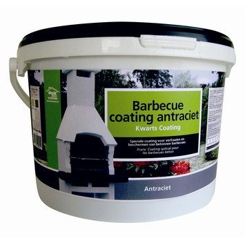De barbecuecoating antraciet is een speciale weersbestendige kwartscoating voor het behandelen van betonnen barbecues. De bbq-coating geeft een waterbestendige laag en een mooi decoratief effect. De coating is gebruiksklaar en kan eenvoudig worden aangebracht met een kwast of roller. De emmer van 8 kg is in principe voldoende voor het coaten van ieder type betonnen barbecue in het assortiment van GAMMA. De barbecuecoating is uitgevoerd in de trendkleur antraciet, maar is ook verkrijgbaar in wit, crème en camel (geelbruin).