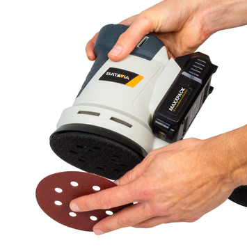 De Batavia excentrische schuurmachine 18V maakt onderdeel uit van de Maxxpack collection. De Maxxpack collection is het flexibele accuplatform van Batavia voor binnen- en buitenklussen. Je kan met één accu meer dan 30 apparaten voorzien van stroom.