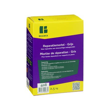 Beamix reparatiemortel 408, is een veelzijdig toepasbare cementgebonden reparatiemortel. Supersterke hechting aan bestaande betonnen en steenachtige ondergronden voor binnen en buiten.