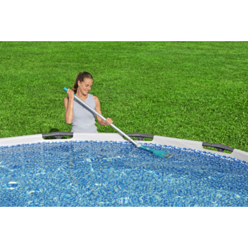 Geniet van een schoon zwembad met de Flowclear™ AquaTech™ zwembadstofzuiger. Met dit compacte en draadloze apparaat verwijder je in een handomdraai vuil van de wanden en bodem. Eén druk op de knop en hij is klaar voor actie. Ideaal voor een snelle schoonmaakbeurt voor je gasten of een frisse duik. De 3-voudig verstelbare telescopische stang biedt bereik op alle dieptes, terwijl het transparante reservoir van 0,9 liter je laat zien wanneer legen nodig is. Dankzij het lichte gewicht van 1,35 kg werk je moeiteloos door. Geschikt voor baden tot 305 cm: een schone, uitnodigende zwemervaring ligt binnen jouw bereik.