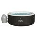 Deze opblaasbare ronde spa Miami 180x66 cm voor 2-4 personen heeft een zwarte buitenkant van TriTech materiaal en een liner met mozaïek print. Dit bad is uitgerust met een Power Saving System. Deze automatische start/stop timer regelt het verwarmingssysteem. Alle functies zijn te bedienen d.m.v. het digitale soft-touch controle paneel. Zachte, isolerende bodem, uitgerust met een drain. Incl. opblaasbare cover, filtercartridge en een chloordrijver. Voor het verplaatsen van de (lege) spa, zijn 2 handgrepen aangebracht. Verhoogt de temperatuur met 1,5-2,0° C per uur. Max. temperatuur 40° C. Filtercapaciteit: 1,3 m³/u. Watercapaciteit: 669 ltr. CE/GS gekeurd. Afmeting buiten: 180x66 cm, binnenmaat: 132 cm. 2050W bij een temperatuur van 20 graden.