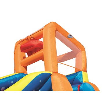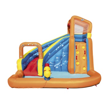 Met het Bestway Waterpark hebben de kinderen eindeloos zomerplezier. Klimmen, glijden & plonsen. Een heus waterpretpark in je eigen tuin! Het waterpark is gemaakt van kleurrijk en duurzaam PVC gecoat polyester. Door de inbegrepen robuuste blazer is het waterpark zo opgezet. Vul het zwembad met water, en de kiepemmer gooit willekeurig volle emmers water over de glijbaan. Een waterkanon, klimwand, veiligheidsnet en opbergtas zijn uiteraard meegeleverd. Afmetingen: 365 x 320 x270 (lxbxh)