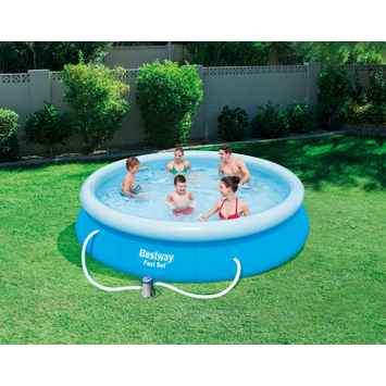 Dit ronde opblaasbare zwembad zorgt voor veel waterplezier en is snel en simpel op te zetten. Het zwembad is gemaakt van stevig Tritech materiaal en is bestand tegen UV stralen en chloor. Het bad wordt geleverd Incl. 12 V. cartridgefilter van 1,2 m³/u. Cartridge type I. Watercapaciteit (80%): 5.377 liter. Afmeting: 366x76 cm.