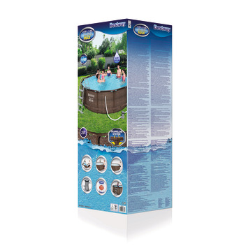 Dit ronde bestway zwembad gaat voor veel waterplezier zorgen en is gemakkelijk op te zetten. Het zwembad beschikt over een sterk ovaal frame dat voor nog meer stevigheid en duurzaamheid zorgt. Het is gemaakt van TriTech materiaal met een extra band rondom. Het seal & lock systeem zorgt voor een zekere buisverbinding. De buitenkant van het zwembad beschikt over een rotanlook en aan de binnenkant is een mozaïekprint te zien. Het zwembad wordt geleverd met anti-microbe filter, type II een filterpomp 2 m³/u en een ladder. Watercapaciteit: 9.150 ltr, Afmeting: Ø 366x100 cm.