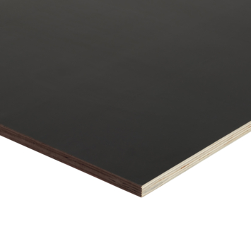 De betonplex plaat 244 x 122 cm 18 mm is een sterke multiplexplaat met aan beide zijden een harde en waterdichte fenolhars toplaag. Deze laag is glad en slijtvast, waardoor je de plaat kunt gebruiken voor binnen en voor plekken die beschut buiten liggen. De basis bestaat uit A/A-grade populieren multiplex dat strak is verlijmd met melamine. Je zaagt de plaat eenvoudig op maat zonder dat hij snel uitscheurt, wat prettig is bij kasten, wanden of andere constructies.