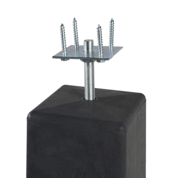Ben je op zoek naar een betonpoer voor het funderen van je overkapping, veranda, schutting of blokhut? Deze antraciete betonpoer wordt geleverd inclusief de in hoogte verstelbare montageplaat. Deze plaat is verzinkt uitgevoerd. De Betonpoer is taps (18x18 cm onder en 15x15 cm boven). De hoogte van de betonpoer is 50 centimeter. Het plaatje is 8,5x8,5 cm. De lengte van de schroef is 10 cm.