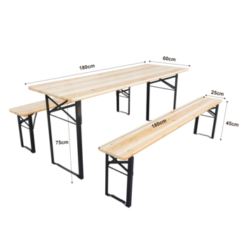 Voor feesten en andere evenementen is een biertafel ideaal! Je kunt gezellig met zijn allen bij elkaar zitten. Doordat deze biertafel gemaakt is van hout, creëer je een aangenaam warme sfeer. De biertafel is 75 centimeter hoog, 60 centimeter breed en 180 centimeter lang. De tafel wordt inclusief 2 banken verkocht. De banken zijn ruim genoeg waardoor je er makkelijk met 6 personen op kunt zitten.
