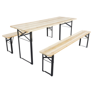 De biertafel en de banken worden geleverd als bouwpakket en zijn makkelijk te monteren. Mocht er geen gebruik worden gemaakt van de biertafel, is het verstandig om deze te beschutten of af te dekken voor langer gebruik.