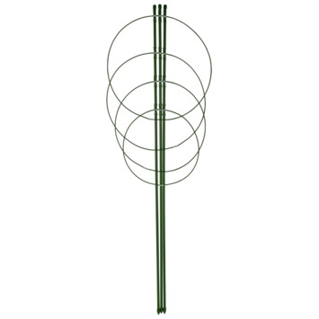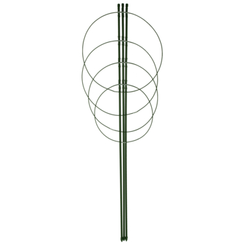 Plantensteunen voor de ondersteuning en begeleiding van uw planten. Zo voorkomt u dat uw planten omwaaien of omvallen na een stevige regenbui of windvlaag. De kunststof plantensteunen vallen dankzij de groene kleur weg bij het groen van de planten. De plantensteun heeft een doorsnede van 29,5cm en is voorzien van 90cm stokken.