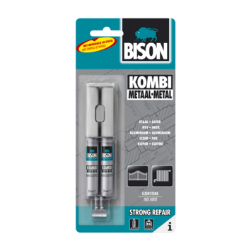 Bison kombi metaal kaart 24 ml metaalkleurige ijzersterke 2-componenten epoxylijm. Voor reparaties onder extreme omstandigheden.