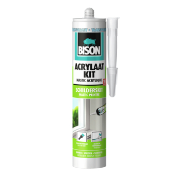 Met Bison Acrylaatkit dicht je binnenshuis eenvoudig weinig werkende voegen, naden, kieren en scheuren die blijvend in het zicht zitten. Bijvoorbeeld bij vensterbanken, trappen, lambriseringen, plafonds, etc. Bij het schilderen kan de kit ook overschilderd worden. Hecht op baksteen, (gas)beton, metselwerk, pleisterwerk, hout, glas, keramische tegels, metalen en hard PVC. Let op: Deze acrylaatkit is bij verwerking niet transparant, maar na verwerking zal deze transparant opdrogen.