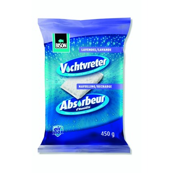 Air Max Vochtvreter® Navulzak Lavendel 450 g Handige navulzak voor het navullen van Air Max Vochtvreter®. Verlaagt een te hoge relatieve luchtvochtigheid in gesloten ruimtes met weinig of geen ventilatie. O.a. geschikt voor caravan, boot, schuur, meterkast, zolder, voorraadkast, kelder, kruipruimte, logeerkamer, kledingkast, tuinhuis, keukenkast, kluis en wasruimte.