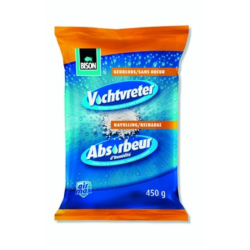 Air Max Vochtvreter® Losse Kristallen Neutraal Zak 450 g Losse kristallen voor het navullen van Air Max Vochtvreter®. Verlaagt een te hoge relatieve luchtvochtigheid in gesloten ruimtes met weinig of geen ventilatie. O.a. geschikt voor caravan, boot, schuur, meterkast, zolder, voorraadkast, kelder, kruipruimte, logeerkamer, kledingkast, tuinhuis, keukenkast, kluis en wasruimte.