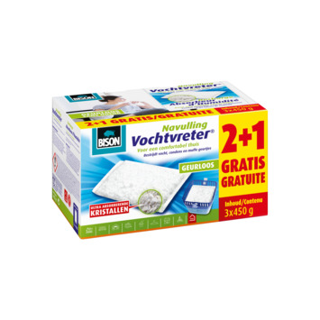 De Bison vochtvreter navulling neutraal 1350 gram is een handige navulzak voor het navullen van de Bison Air Max Vochtvreter®. Verlaagt een te hoge relatieve luchtvochtigheid in gesloten ruimtes met weinig of geen ventilatie. O.a. geschikt voor caravan, boot, schuur, meterkast, zolder, voorraadkast, kelder, kruipruimte, logeerkamer, kledingkast, tuinhuis, keukenkast, kluis en wasruimte.