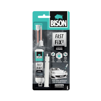 Bison Fast Fix² Vloeibaar Power is een snelle en sterke 2-componenten reparatielijm met spleet vullende eigenschappen op basis van cyano-technologie. Het is geschikt voor vele soorten reparatieklussen voor binnen en buitenshuis op allerlei materialen zoals hout, metaal, keramiek, steen, glas en kunststof, zowel twee dezelfde materialen onderling als combinaties ervan. Zelfs voor niet passende oppervlakken. De gelformule maakt toepassingen in elke richting mogelijk.