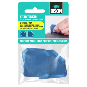 De Bison Kitafstrijker 2 stuks is een hulpmiddel waarmee je kitvoegen tussen de 0 en 14 millimeter glad kunt afwerken. De set bestaat uit twee afstrijkers van thermoplastisch rubber die geschikt zijn voor gebruik binnen, buiten en in vochtige ruimtes zoals de badkamer of keuken. Door de verschillende kanten van de afstrijkers kun je zowel rechte voegen als hoeken van 45 en 90 graden afwerken. Dit maakt de strijkers bruikbaar voor veel verschillende toepassingen, bijvoorbeeld langs een badrand, gootsteen of tegelmuur.