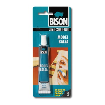 Bison Model Balsa Kaart 25 ml Modelbouwlijm voor het verlijmen van balsahout, Astralon, celluloid, papier en textiel. Transparant, sneldrogend, sterk en benzinebestendig.