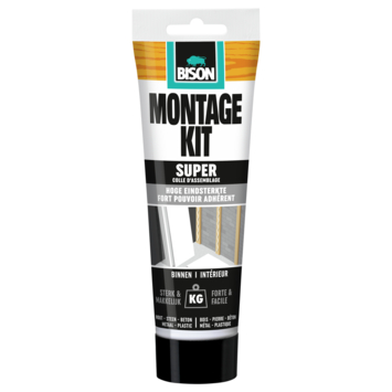 Bison montagekit Super hangtube 300 gr Sterke, universele, oplosmiddelvrije montagelijm. Ideaal voor het eenvoudig en muurvast bevestigen van o.a. hout, kunststof, metaal, steen, gips, tegels en piepschuim op poreuze ondergronden zoals beton, steen, pleisterwerk, hout en spaanplaat. Blijvend elastisch en vullend. Spijkers en schroeven overbodig.