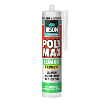 De Bison professional polymax express crystal clear lijmkit 300 gr universele, kristalheldere montagelijm en afdichtingskit op basis van unieke smp technologie. Voor het lijmen, monteren en afdichten van vrijwel alle (bouw)materialen op vrijwel alle ondergronden (glad, poreus, niet-poreus en licht vochtig). Kristalhelder. Extra sterk. Blijvend elastisch.
