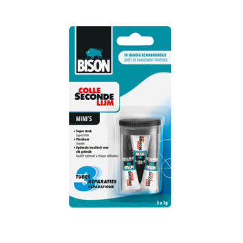 De Bison secondelijm mini 1 gram 3 stuks zijn super sterk en razend snel en geschikt voor alle (kleine) reparaties in & om het huis. Handig in gebruik en makkelijk op te bergen in het meegeleverde bewaardoosje.