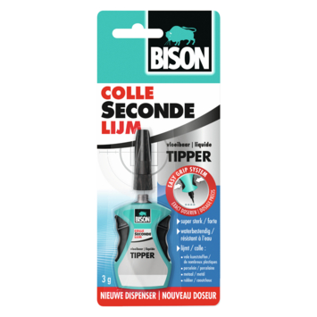 De vloeibare secondelijm met tipper (3 g) van Bizon lijmt razendsnel en supersterk. Nauwkeurig werken is geen probleem, dankzij de ultramoderne dispenser. Lijmt verschillende materialen zoals de meeste kunststoffen, metaal, rubber, porselein, hout en kurk.