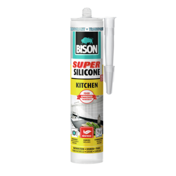 Bison Super Silicone Kitchen Transparant Koker 310ml Geschikt voor het afdichten bij toepassingen in de keuken zoals voegen tussen aanrecht, tegelwand en vloer, spoelbak en tegelwanden onderling. Uitstekende hechting op alle materialen in en rondom de keuken zoals glas, natuursteen, composiet, graniet, geschilderd hout, beton, RVS en vele andere metalen en kunststoffen. Uitermate geschikt voor toepassing met een hoge hygiëne eis.