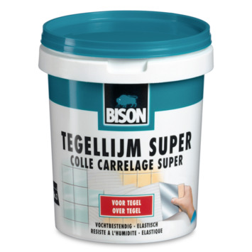 Bison Tegellijm Super Pot 1 kg Lijm voor alle soorten wandtegels en tegels over tegels. Vochtbestendig, blijvend elastisch en makkelijk verwerkbaar.