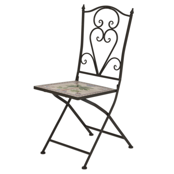 Met het stevige ijzeren frame en ergonomische zithoogte van 45 cm zit je comfortabel en veilig. De stoel combineert functionaliteit met een unieke uitstraling dankzij het mozaïekpatroon.