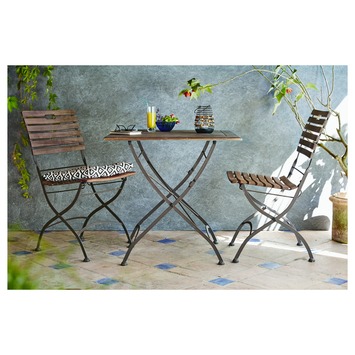 Wil jij een sierlijke bistrotafel die jouw tuin een zomerse look geeft? Ga dan voor bistrotafel Havana 75x75cm. Deze tafel is gemaakt van donker hardhout en heeft een zwart metalen frame dat zich kenmerkt door de gebogen lijnen. Het hout is al gegrond, zodat vuil en vocht in het hout geen kans krijgen. Bovendien is het hout FSC-gecertificeerd, dus afkomstig uit een duurzaam beheerd bos en daarom milieuvriendelijk verkregen. Deze bistrotafel is 75x75cm en inklapbaar, zodat hij makkelijk op te bergen is. Bistrotafel Havana past perfect in een tuin met een romantische uitstraling en is te combineren met de stoelen of bank Havana tot een complete tuinset. Zoek je een wat grotere tafel? Dat kan, want GAMMA heeft ook tafel Havana 127x75cm in zijn assortiment. Kortom: deze mooie bistrotafel van het merk Wakefield is zeer praktisch en daarom ook geschikt voor op een kleine patio of een balkon.