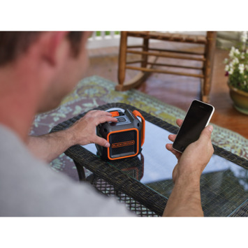 De BLACK+DECKER Bluetooth speaker BDCSP18N is een ideale Bluetooth speaker die je kan gebruiken tijdens het klussen. Verbind je telefoon met de speaker en stream je eigen muziek draadloos. De speaker met een 4" audiodriver produceert een vol, luid en zuiver geluid. De BLACK+DECKER Bluetooth speaker BDCSP18N is onderdeel van het BLACK+DECKER 18V accuplatform, dit betekent dat je dezelfde 18V BLACK+DECKER accu kan gebruiken voor alle BLACK+DECKER 18V machines. De machine wordt geleverd zonder accu.