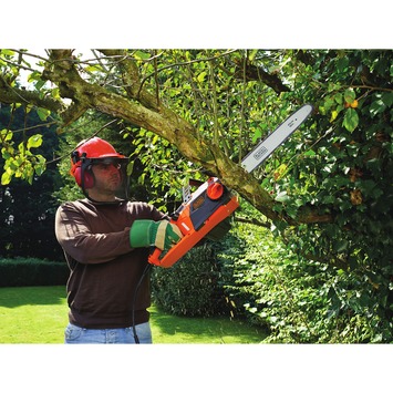 De BLACK+DECKER elektrische kettingzaag CS22045-QS is een krachtige 2200W kettingzaag met een zwaardlengte van 45cm. De machine is voorzien van anti-kick back, SDS kettingspanner zonder gereedschap, automatische kettingsmering, kettingrem en een snoer van 0,15m. Hierdoor werkt de CS2245-QS veilig en probleemloos. De kettingsnelheid van de machine bedraagt 12.5m/s.