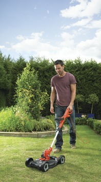 De BLACK+DECKER 3-in-1 strimmer type ST5530CM-QS is een zeer veelzijdige machine. De krachtige grastrimmer met een vermogen van 550W en een snijbreedte van 30 centimeter bouwt u zeer eenvoudig om naar een grasmaaier of een kantensnijder met bijgeleverde wielbasis en graskantgeleiderwiel. Uitermate geschikt voor het maaien van kleinere tuinen en oneven oppervlakken en hellingen. In hoogte verstelbaar van 4 tot 6 centimeter. Uitermate geschikt voor kleinere schuren: neemt veel minder ruimte in dan een traditionele grasmaaier. Het gepatenteerde AFS volautomatisch draadtoevoersysteem zorgt ervoor dat het strimdraad altijd de optimale werklengte heeft en voorkomt vieze handen. Door de gepatenteerde E-Drive technologie heeft de machine een krachtige tandwieloverbrenging waardoor ook zwaarder strimwerk mogelijk is. Werkt prettig door de 2de verstelbare handgreep en de telescopische lichtgewicht steel. Voor deze accustrimmer is een losse reserve spoel te bestellen. Dit is de A6481-XJ (Artikel: 347024).